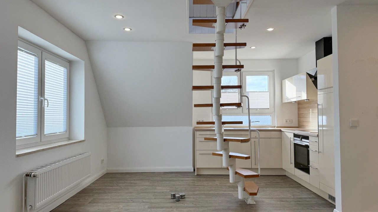 Die Wohnung erstreckt sich über das gesamte Obergeschoss und den ausgebauten Spitzboden. 2019 wurde die Wohnung umfassend renoviert. U. a. wurden alle Fenster ausgetauscht, eine neue Einbauküche eingebaut sowie die Heizungsanlage erneut.